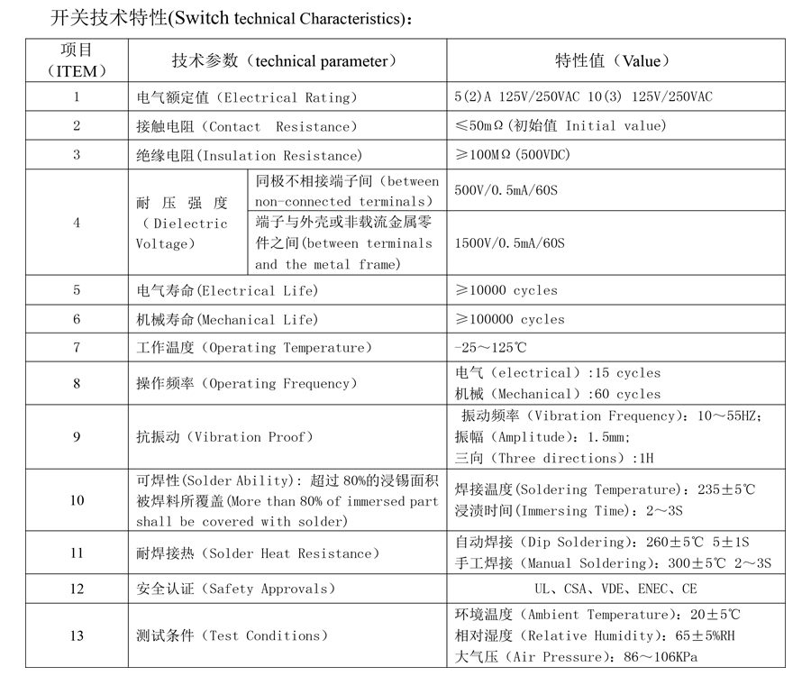 | 11 | Lodde varmebestandighed | Dyplodning: 260±5℃ 5±1S Manuel lodning: 300±5℃ 2~3S |